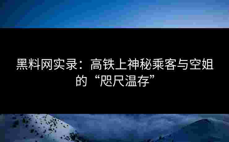 黑料网实录:高铁上神秘乘客与空姐的“咫尺温存”
