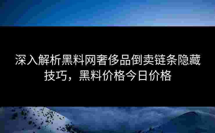 深入解析黑料网奢侈品倒卖链条隐藏技巧,黑料价格今日价格