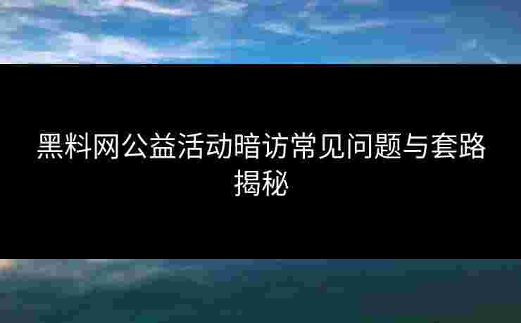黑料网公益活动暗访常见问题与套路揭秘摘要: 随着社会对公益活动的关注不断升温,越来越多的组织和个人通过网络平台发起各种形式的公益活动。在这些活动中,黑料网作为一个知名的网络平台,因其特殊的商业模式和公关手段,吸引了不少人参与...