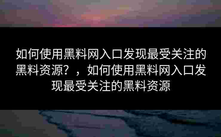 如何使用黑料网入口发现最受关注的黑料资源?,如何使用黑料网入口发现最受关注的黑料资源