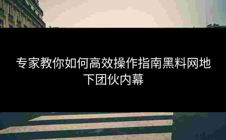 专家教你如何高效操作指南黑料网地下团伙内幕