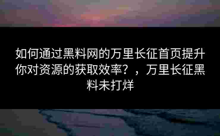 如何通过黑料网的万里长征首页提升你对资源的获取效率?,万里长征黑料未打烊