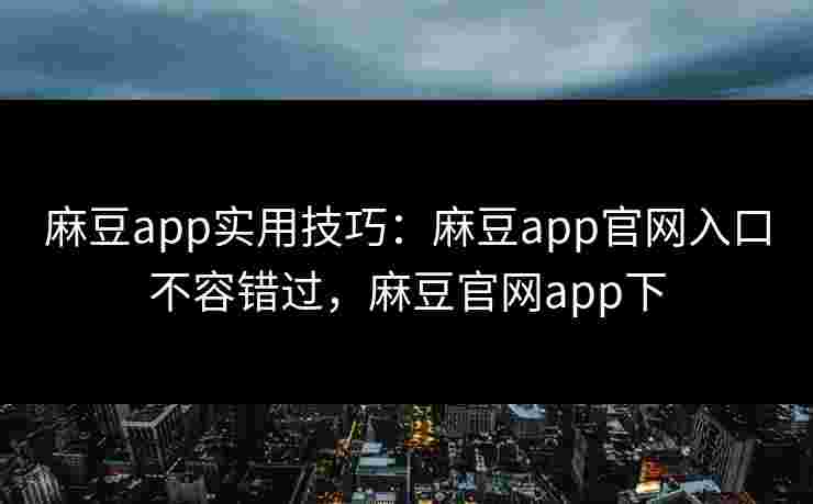 麻豆app实用技巧:麻豆app官网入口不容错过,麻豆官网app下